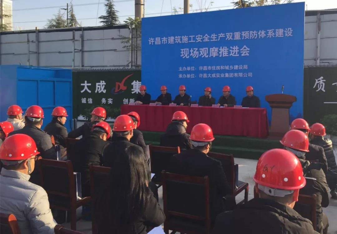 近日,由許昌市住房和城鄉(xiāng)建設局主辦、集團公司承辦的許昌市建筑施工安全生產(chǎn)雙重預防體系建設現(xiàn)場觀摩推進會在公司一峰廣場項目施工現(xiàn)場舉行。市住建局副局長尹群安、建管科科長朱延昭、安監(jiān)站副站長彭保華,各縣區(qū)市住建局分管安全副局長、安監(jiān)站站長,集團公司領導高峰、李耀,一峰集團地產(chǎn)公司總經(jīng)理郭紅軍,全市二級以上施工企業(yè)代表近百人參加會議。會議由朱延昭科長主持。