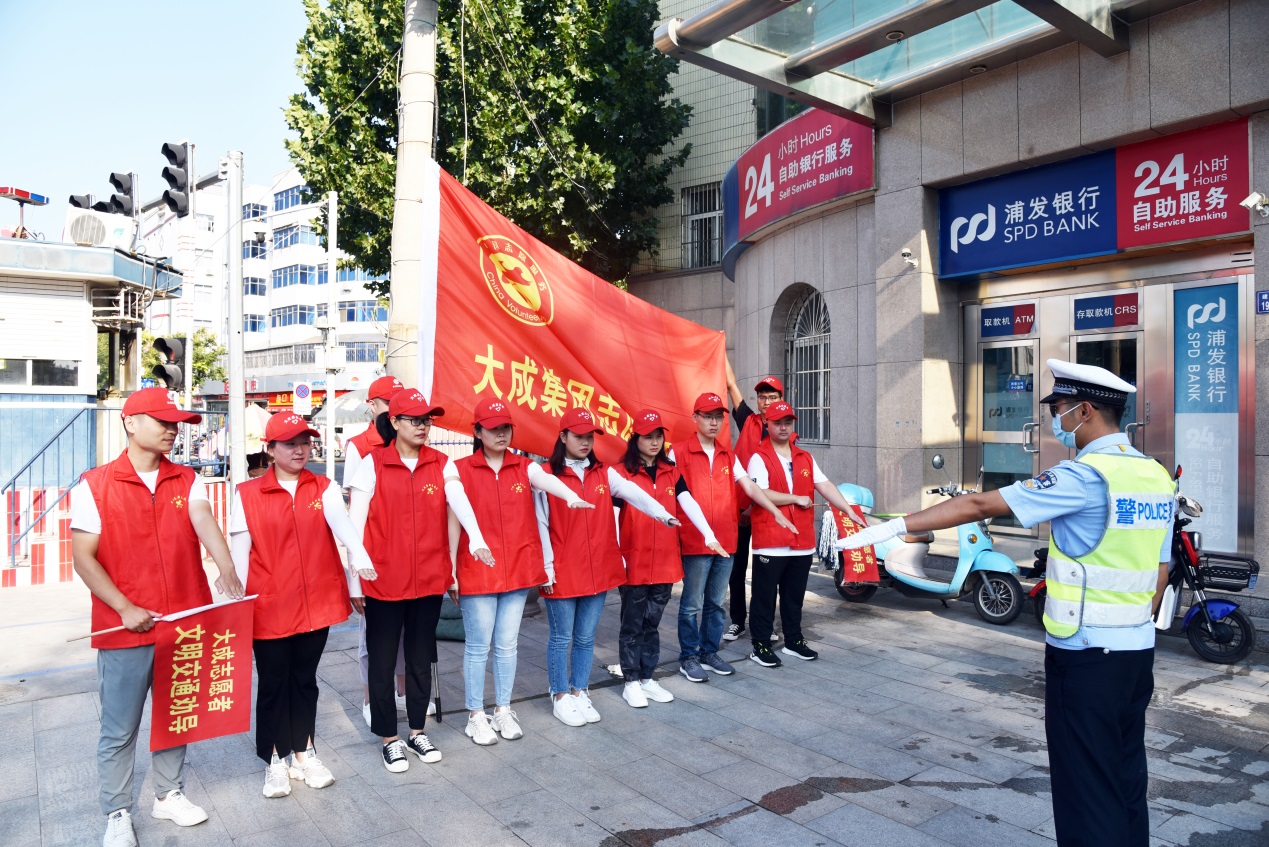 圖為志愿服務(wù)小組學(xué)習(xí)交通指揮手勢(shì)