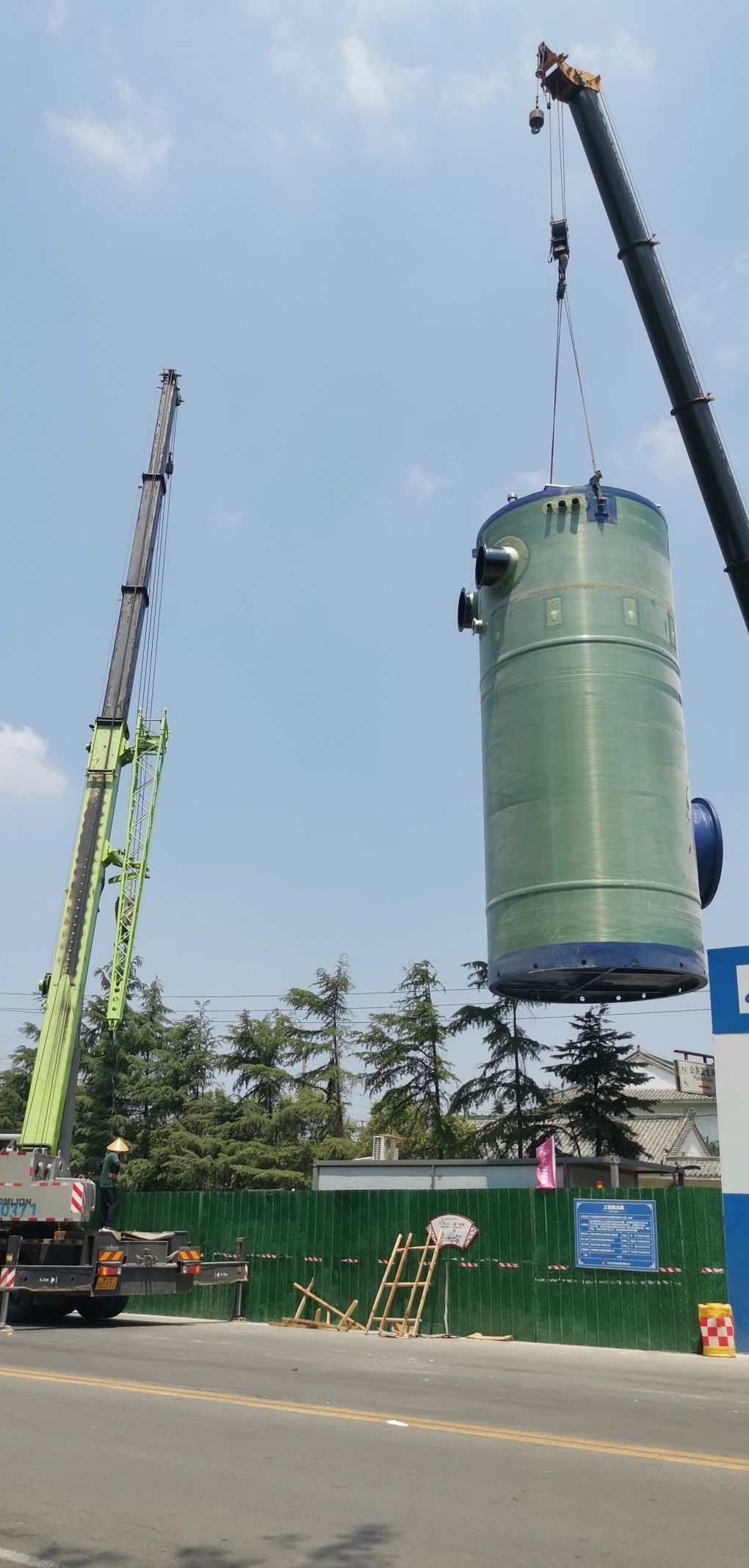 此次吊裝的一體化泵站規(guī)格顯著,直徑達(dá) 4.2 米,高 10 米,自重 15 噸。作為城市排水提升工程的核心設(shè)施,其性能優(yōu)勢突出。該泵站配備先進(jìn)的自動(dòng)化控制系統(tǒng),能依據(jù)集水池水位變化自動(dòng)調(diào)控水泵啟停,實(shí)現(xiàn)無人值守運(yùn)行。同時(shí),可實(shí)時(shí)監(jiān)測水位、流量、設(shè)備故障等運(yùn)行狀態(tài)信息,并將數(shù)據(jù)同步至遠(yuǎn)程監(jiān)控中心,便于管理人員遠(yuǎn)程操作與維護(hù),大幅提升了運(yùn)維效率。